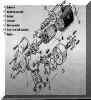 In More detail 1. Back to basics The starter motor engages with a gear on the flywheel of the engine, to crank the engine, in order to make it fire. 2. Why it doesn't stay in mesh To explain further - the gear on the starter has for instance, ten teeth. The flywheel gear has 100. The gear ratio is therefore ten turns of starter to one of the engine. If the gear on the starter itself turns at 2,500 rpm, this will relate to an engine speed of 250 rpm. If the starter stayed engaged once the engine had fired, the internals of the starter would not be able to cope with the centrifugal forces generated by the engine now turning the starter! The average engine will routinely rev to 4,000 rpm and many are capable of well in excess of this. The net result of a starter staying in mesh is that, with a gearing of 10:1 it would rev at 40,000 per minute (well in excess of the designed speed) and almost certainly cause a complete failure. So the first requirement of the starter (apart from spinning the engine) are that it disengages. 3. 'Inertia' starter motors Until the mid 1970's most British vehicles used an ‘Inertia’ Starter Motor. This uses the sudden acceleration of the motor when energised, over the inertia of a gear to throw it into the flywheel ring gear. The problem was that the gear would hit the flywheel, spinning at high speed and literally force it’s way into mesh, causing damage to both gears. When the engine fired it went faster than the starter motor and threw it back out of mesh. This crude system is still used on various small engines e.g. lawn mowers, outboards etc, but on the whole has been superseded by the pre-engaged starter. 4. 'Pre-engaged' starter motors The pre-engaged starter does what it says. It engages the drive gear into the ring gear prior to the motor itself spinning up. On the whole this prevents wear to either of the gears. Solenoids To achieve this a solenoid is mounted above the starter. Some purists call this bit an actuator, but no one in the motor trade does! When the starter is switched the solenoid pulls a plunger into itself. The plunger is connected to an engaging lever that in turn is connected to the starter gear (known in the trade as ‘the drive’). So switching the starter pulls a plunger in which pushes the drive out into the ring gear. At the top of the solenoid are a set of 3 contacts. One comes from the battery, one goes to the starter motor itself and between them is a moving contact. The plunger (which I talked about in the previous paragraph) comes back and pushes the moving contact onto the others, thereby connecting the battery to the starter motor. So the motor now turns, however as the drive is now engaged in the ring gear before the motor spins, it doesn’t wear out the gears. On pre-engaged starters the drive has an internal one-way clutch. This slips in one direction and locks up in the other. This is again designed to prevent the starter running with the engine as it helps to stop over-speeding, because when the ring gear is going faster the drive it slips. 5. The motor and gearbox Behind the starter motor is the motor itself - sometimes directly connected to the drive but more frequently these days through a gearbox. The aim of the gearbox is to reduce the size of the starter motor required. A smaller, higher revving motor can now be used with the added benefits of lower weight and current requirements. The downside is that the armature is now spinning very fast indeed and the gearboxes have been known to fail. The gearboxes themselves are relatively simple to repair and on the whole can easily be tacked by any competent D.I.Y mechanic. 6. The armature This sits in a field housing (or body – yoke). There are two types of field housing; one with permanent magnets, the other with field coils which are wound around ‘pole shoes’. These pole shoes only become magnetised when a current flows around them. Most field coil windings can be replaced - although they are often hard to remove because the pole shoe screws are normally very tight indeed. The permanent magnet version suffers more from un-stuck magnets (which can be stuck back) - but don't turn them round. Broken magnets are normally caused by being tapped with a hammer. 7. The commutator Usually at the back of the armature is the commutator. The brushes bear directly on this to transfer the electrical current to and from the armature. Next, look in starter testing which will help you rule out any other problems. A Note Of Caution Some vehicles are now coming onto the market with combined starting and charging systems, and also quick start mechanisms. In these vehicles the engine stops when the vehicle comes to rest and restarts instantly when the accelerator is pressed reducing fuel consumption and emissions. If you have a vehicle fitted with this type of system most of what has been spoken about in this section will not be relevant. For more information on developing technology look at "Teccie Talk".